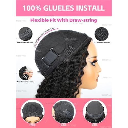 Jerry Curly Half Wig Human Hair 200 Density 3 In 1 Drawstring Seamless Flip Over Half Human Hair Wig for Women 22 Inch Wear Go Glueless Wigs Human Hair Headband Wig Beginner Friendly