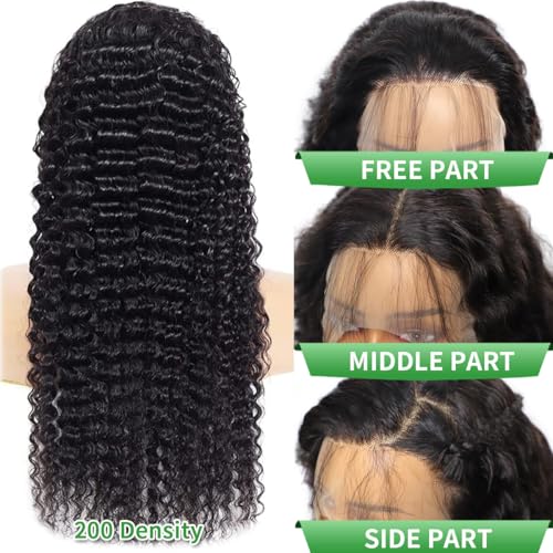 24 Inch 200 Density Deep Wave Lace Front Wigs Human Hair 13x6 HD Lace Front Wigs Human Hair Pre Plucked Brazilian Virgin Curly Human Wig Wet and Wavy Lace Frontal Wigs Natura Black Deep Wave Wig